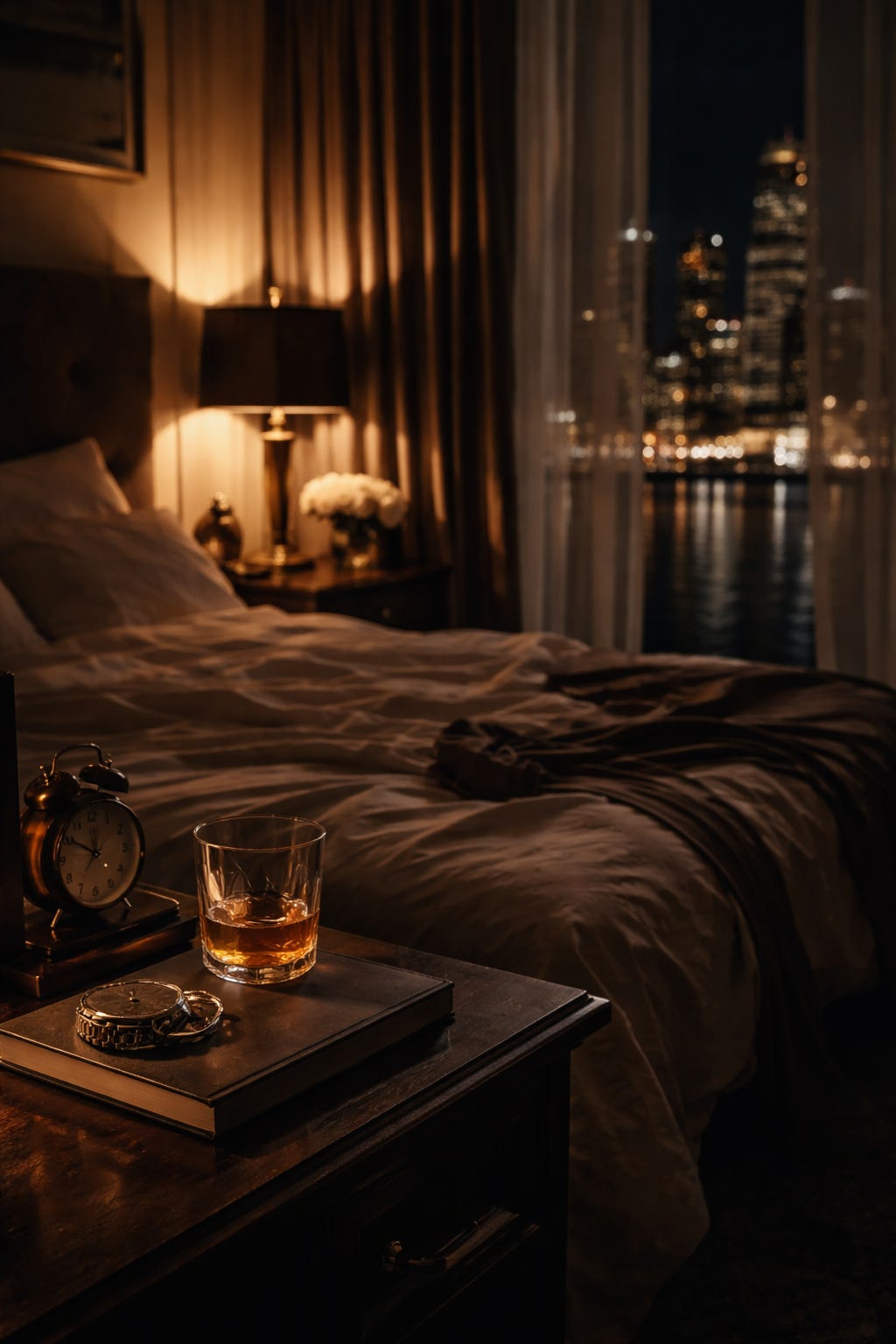He came back to the bed and sat on the edge for a second, not quite touching me. Then he stood and reached for the trousers slung over the chair. No rush. Button. Zip. The domestic obscenity of a belt snicking through loops while my heart hammered stupidly at my ribs.
